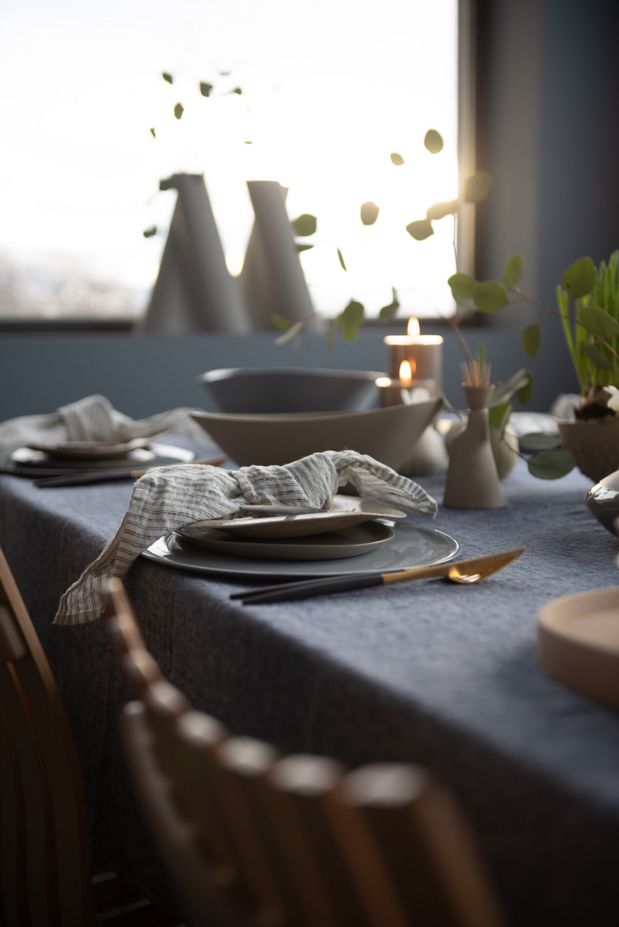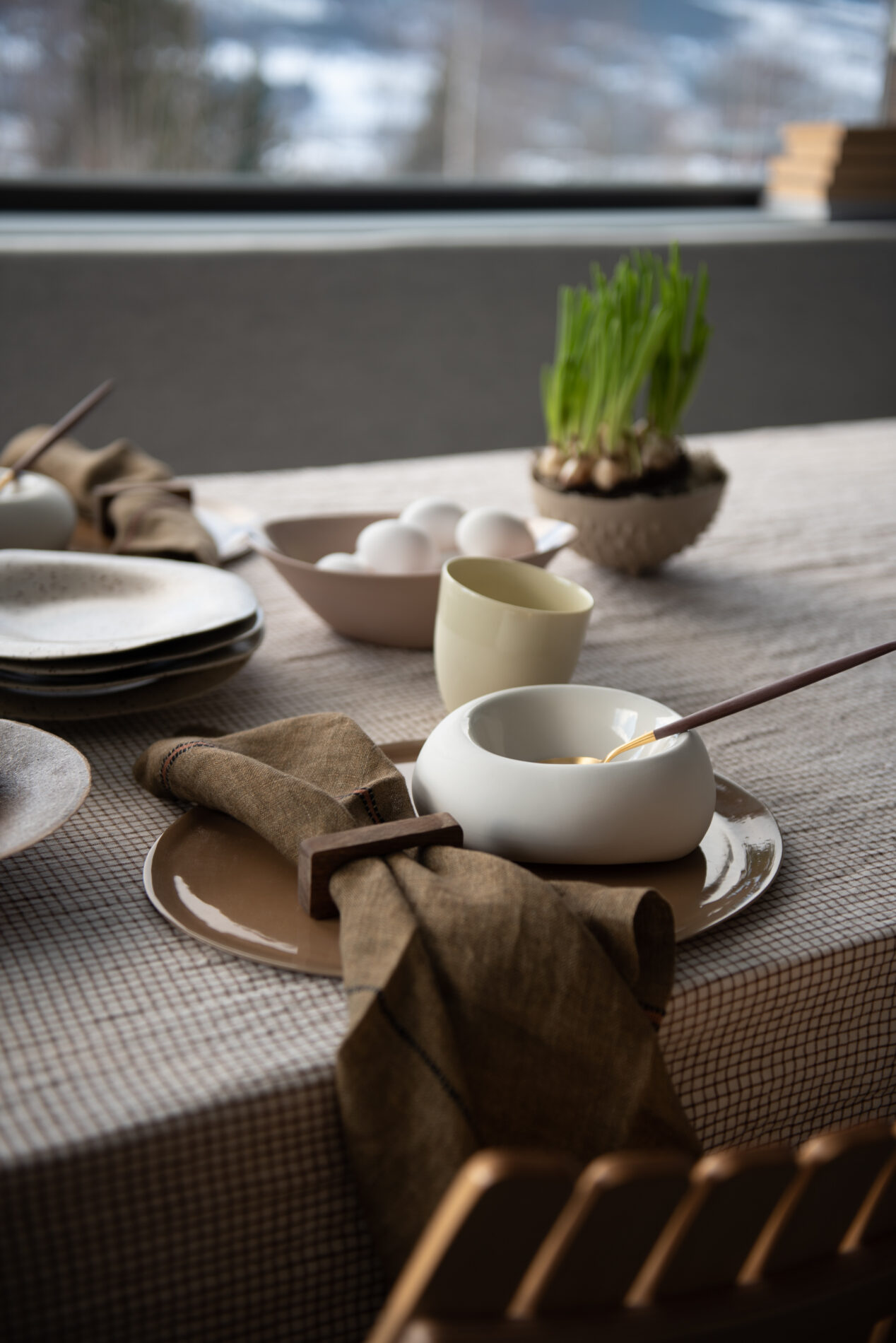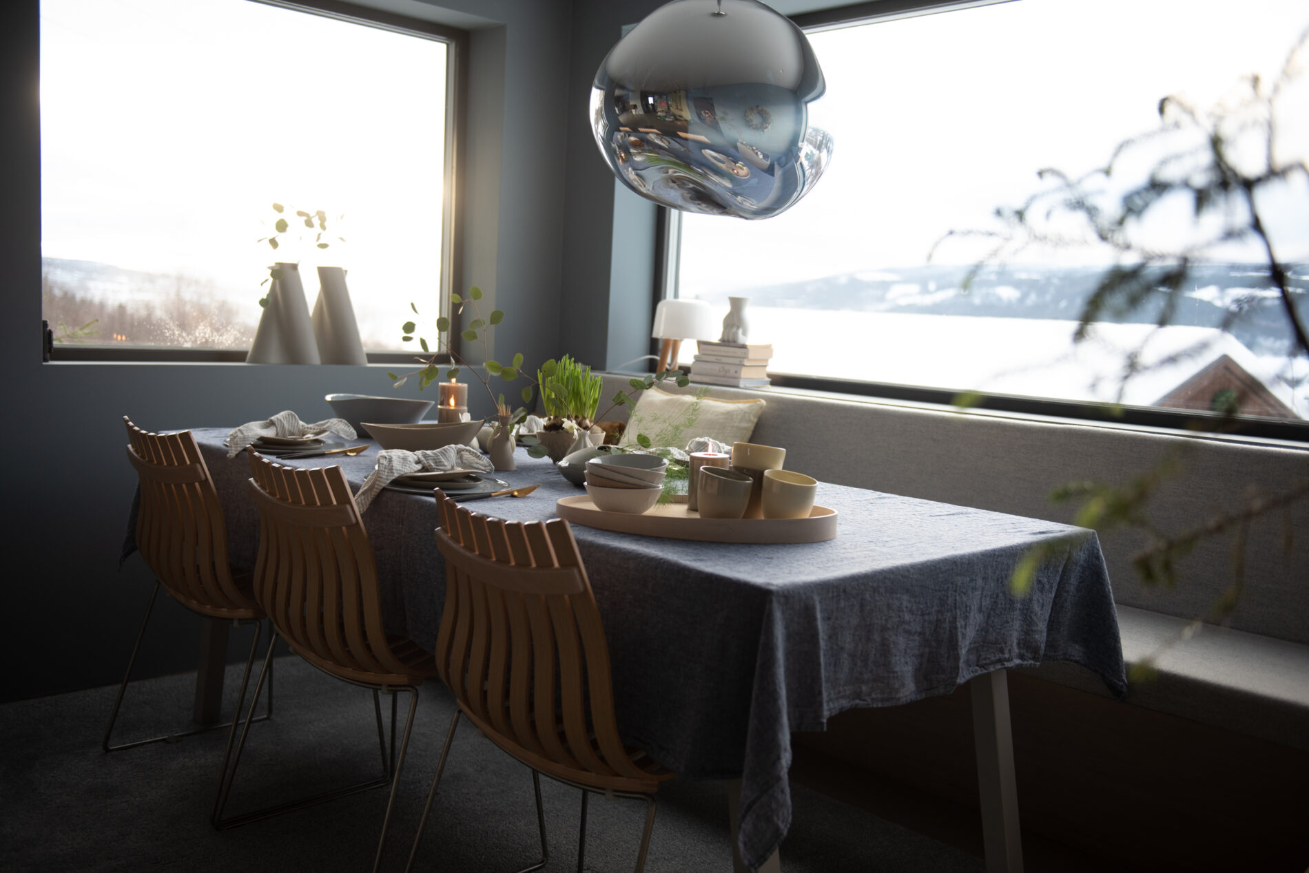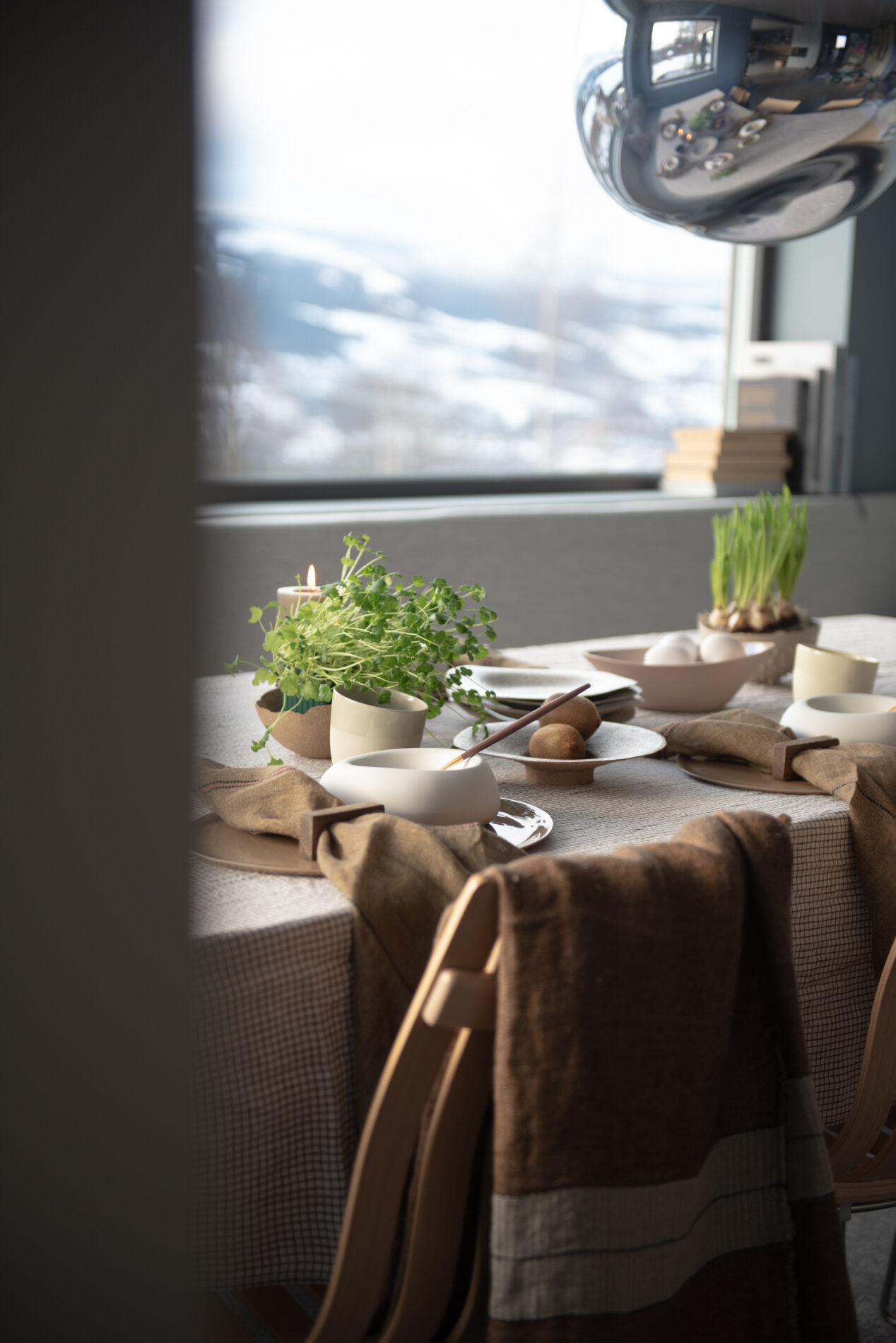 Vi har fokus på varig design og ikke kortvarige trender. Derfor utvikler vi produkter og farger som fint kan kombineres med hverandre og brukes til mange anledninger. Varier med linduker og servietter, å bruk naturlig dekor som sammen med menyen du serverer gir nye stemninger tilpasset anledning og årstid. Da trenger du ikke eie så mange produkter.