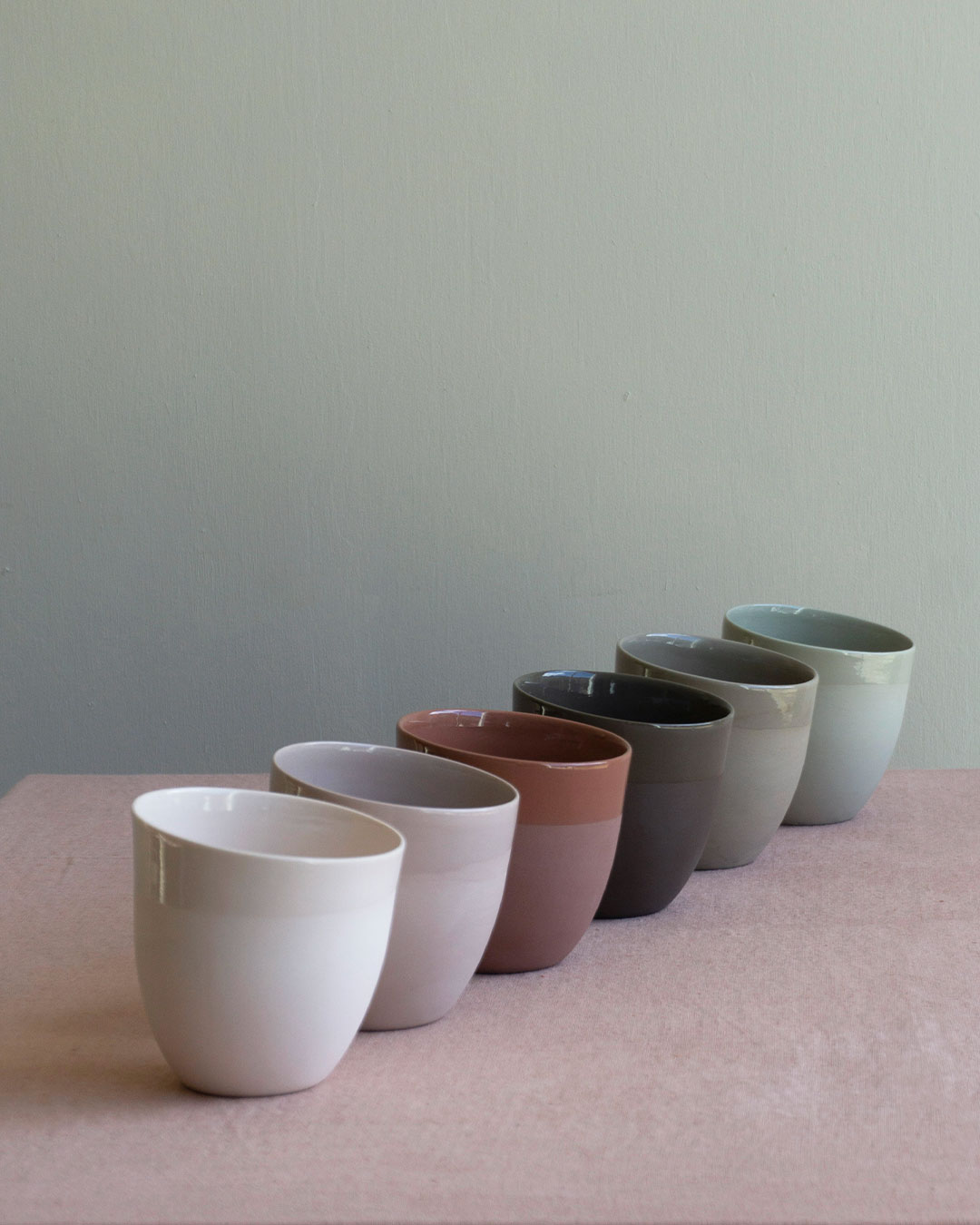 Koppene i KRUM-serien er laget i gjennomfarget porselen og glasert med transparent glasur inni og rundt kanten du drikker av. Det gir en behagelig, fløyelsmyk overflate å holde i. Den finnes i mange farger og tre størrelser; Tekopp, Kaffekopp og Espressokopp. Kan vaskes i oppvaskmaskin.