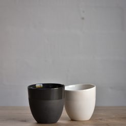 Håndlaget kopp i gjennomfarget porselen som ligger godt i hånden og har en behagelig, fløyelsmyk overflate. Glasert med transparent glasur inni og rundt kanten du drikker av.