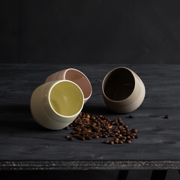 NERD kaffekopp er spesialdesignet for og med kaffenerden Simen Andersen, som ønsket en helt spesiell kopp å servere dommerne da han deltok i VM i kaffebrygging. Koppens form og farge er ment å fremheve smaksopplevelsen. Vi lager den for hånd i vår produksjon på Lillehammer, og koppen tåler oppvaskmaskin.
