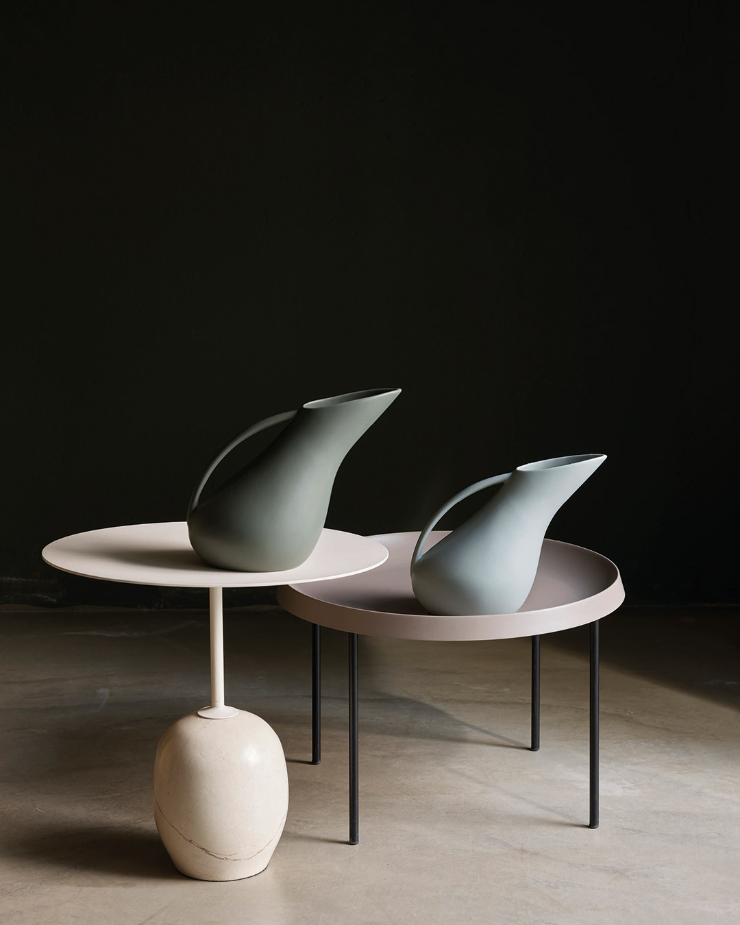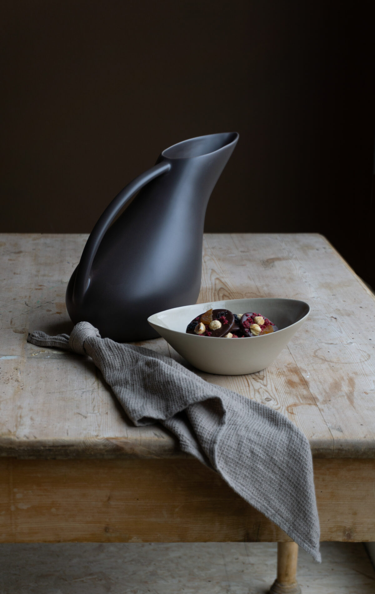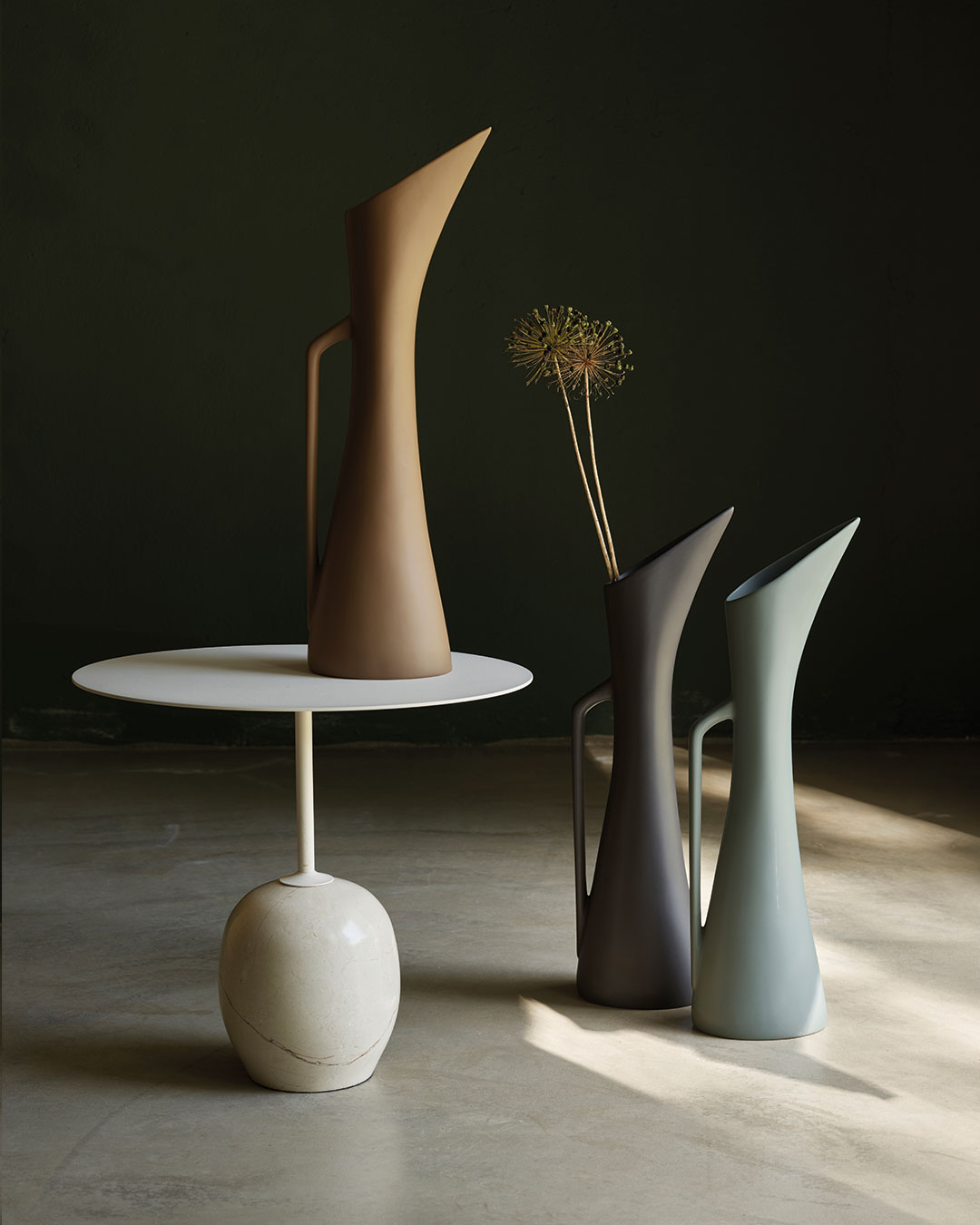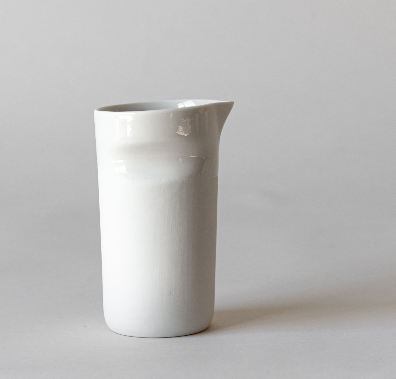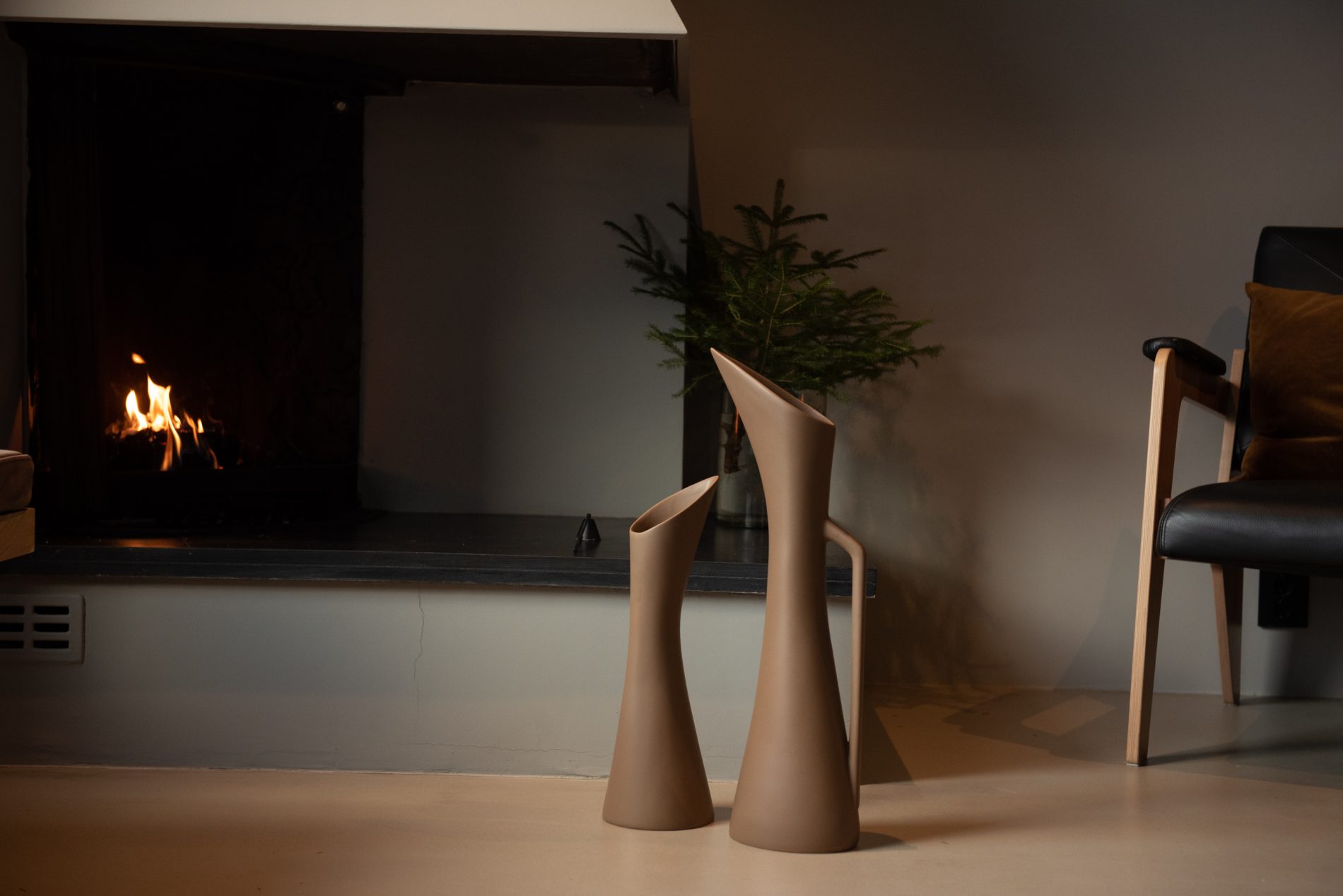 En skulpturell mugge som kan brukes som vannmugge eller vase.