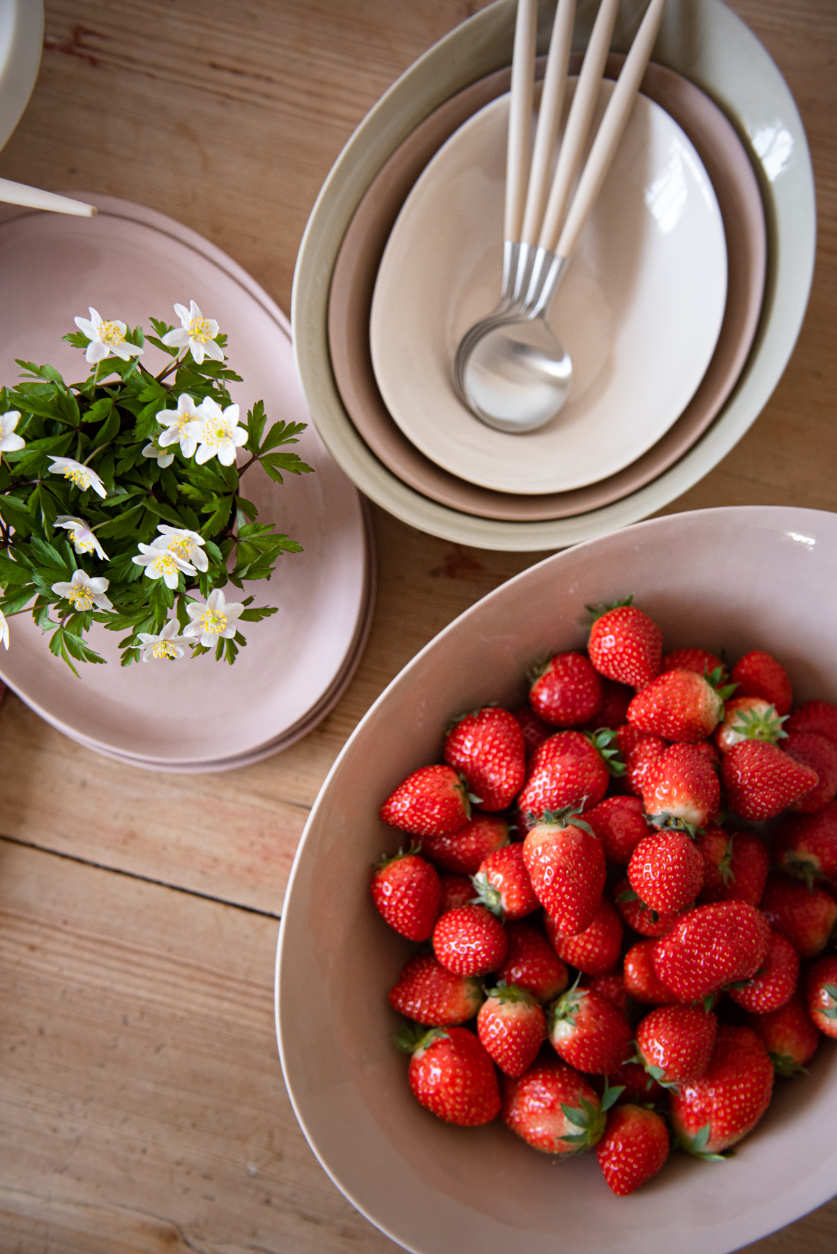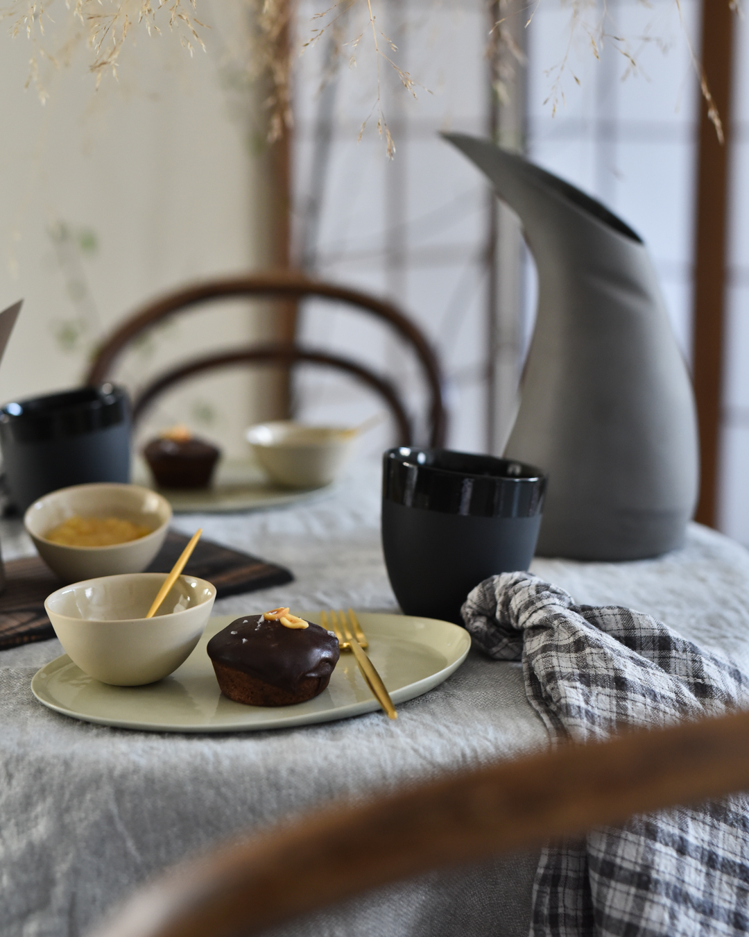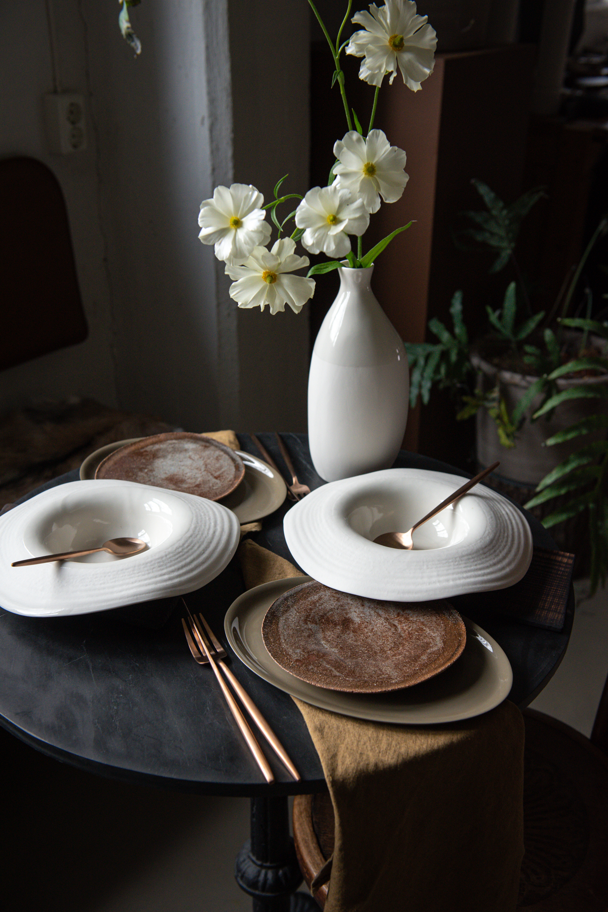 RAUS mugge bruker vi like gjerne som en vase, som til servering. Det aller vakreste er å bruke en enkel, stor blomst eller en lang gren som følger muggens form.