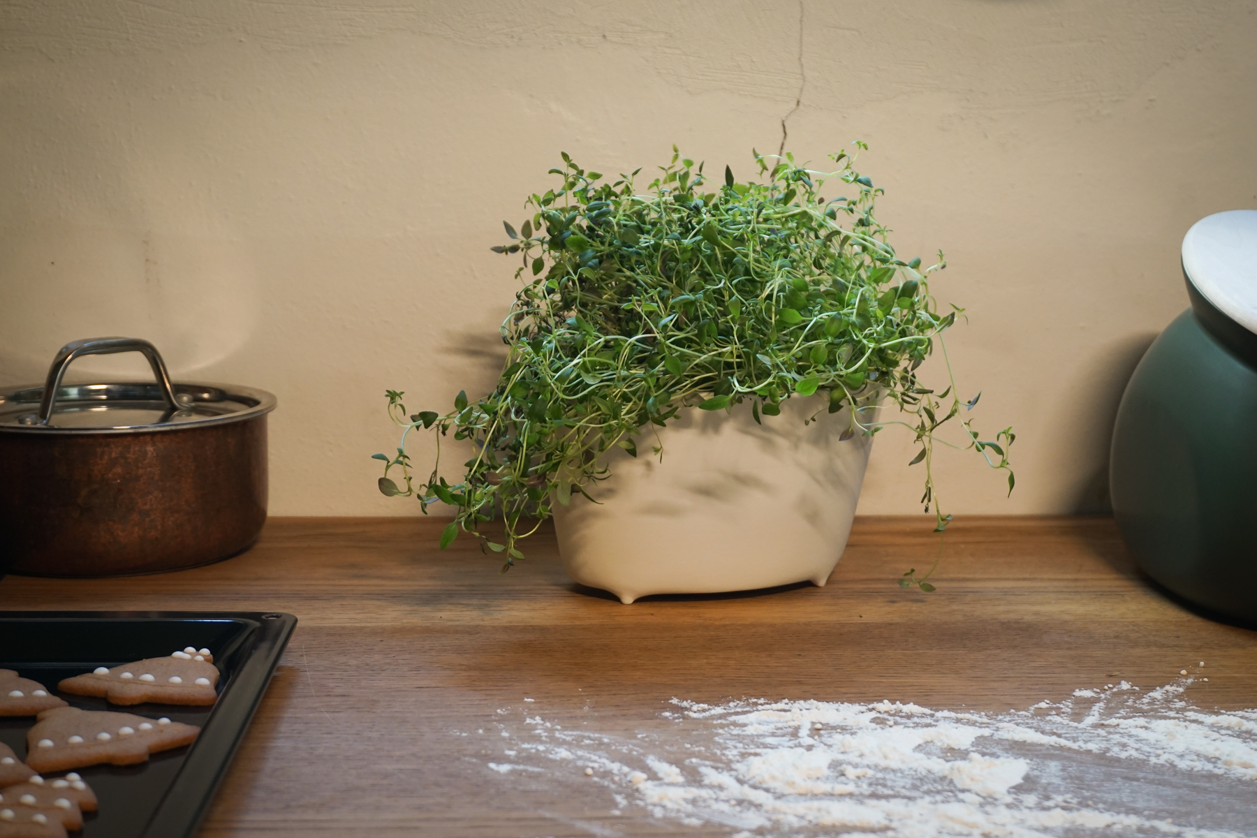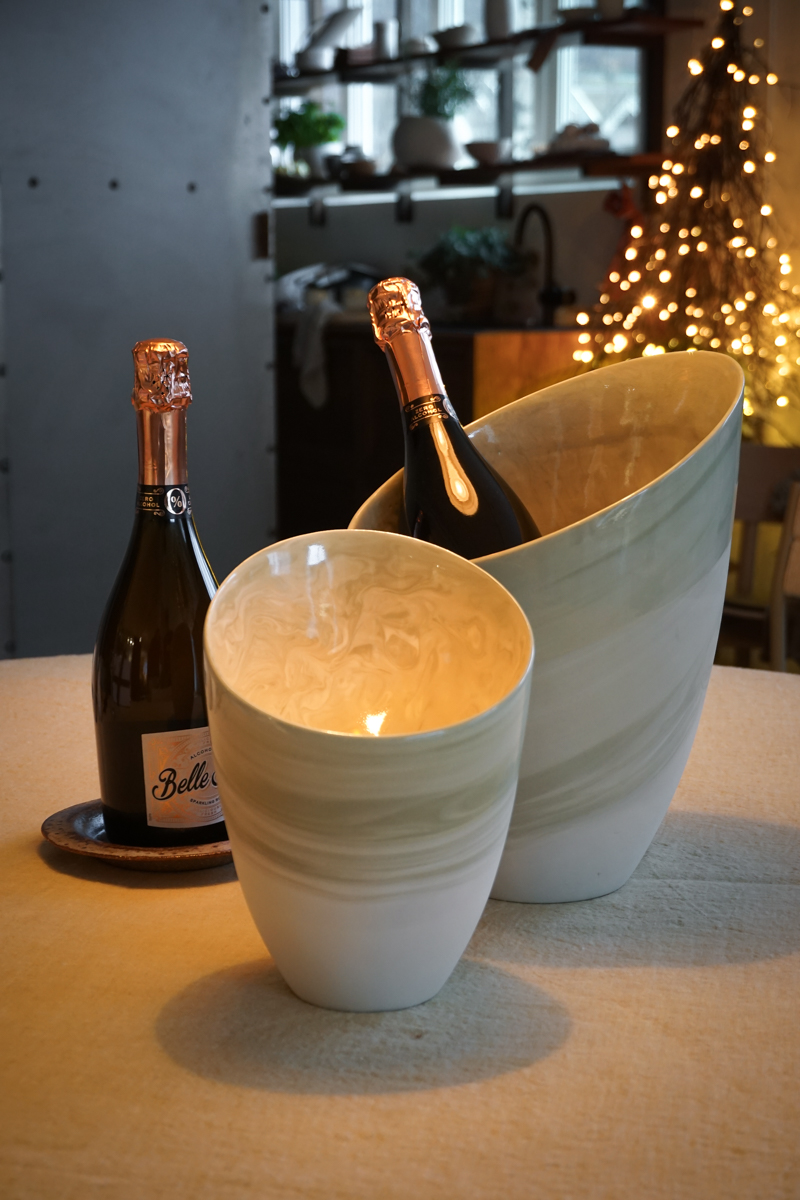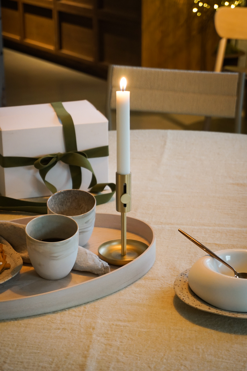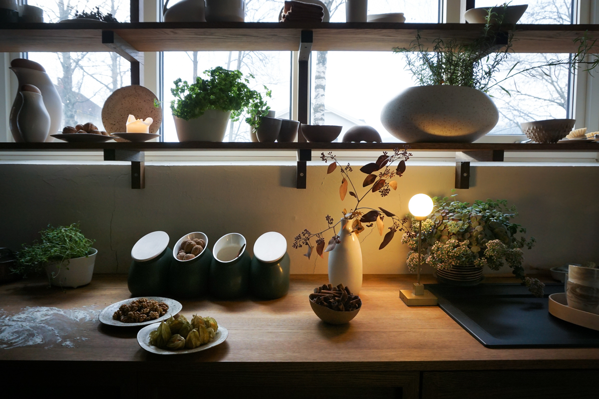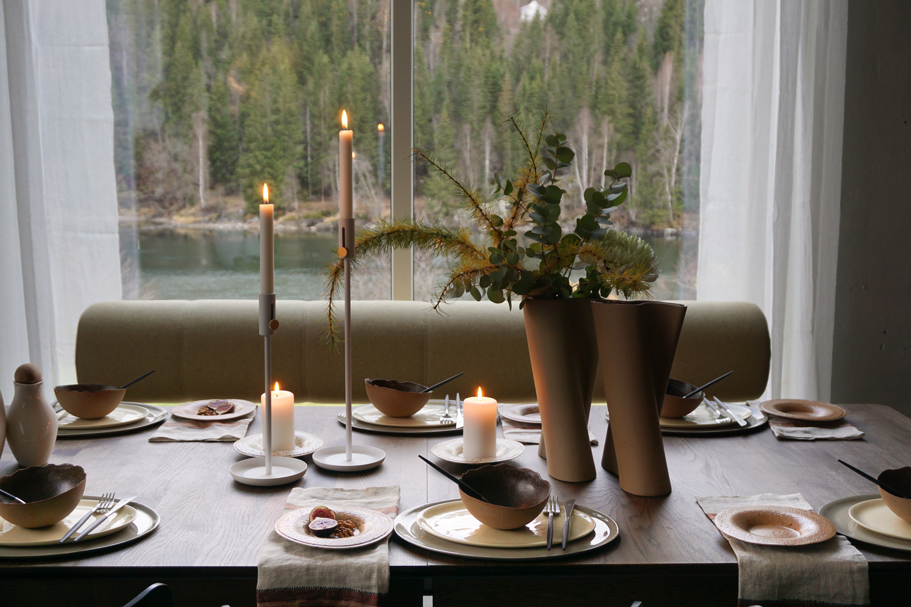 Bølgevasen er et blikkfang i seg selv – skulpturell og rolig i uttrykket. Den myke bølgeformen gir bevegelse til rommet, mens fargen Kanel tilfører dybde og varme.