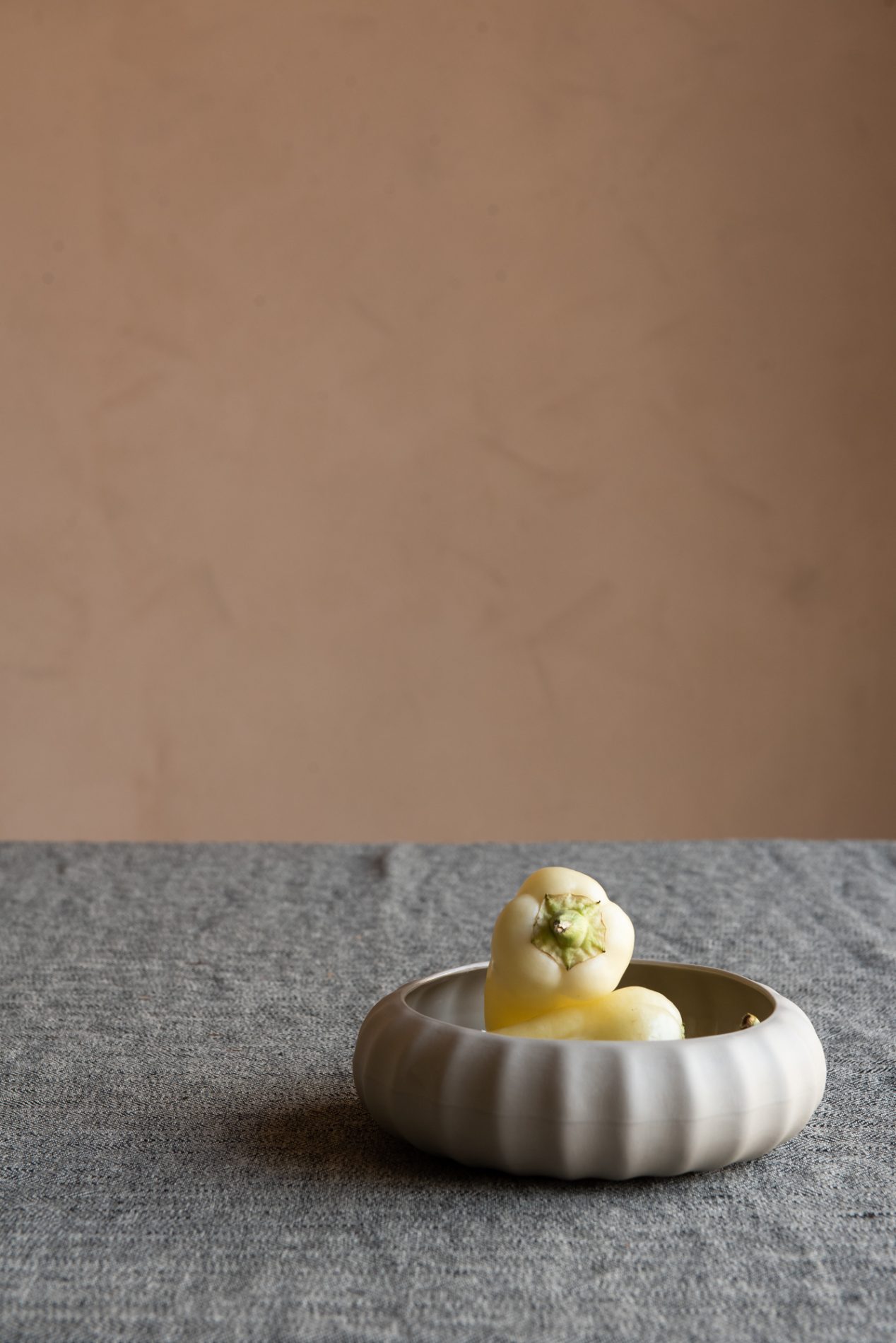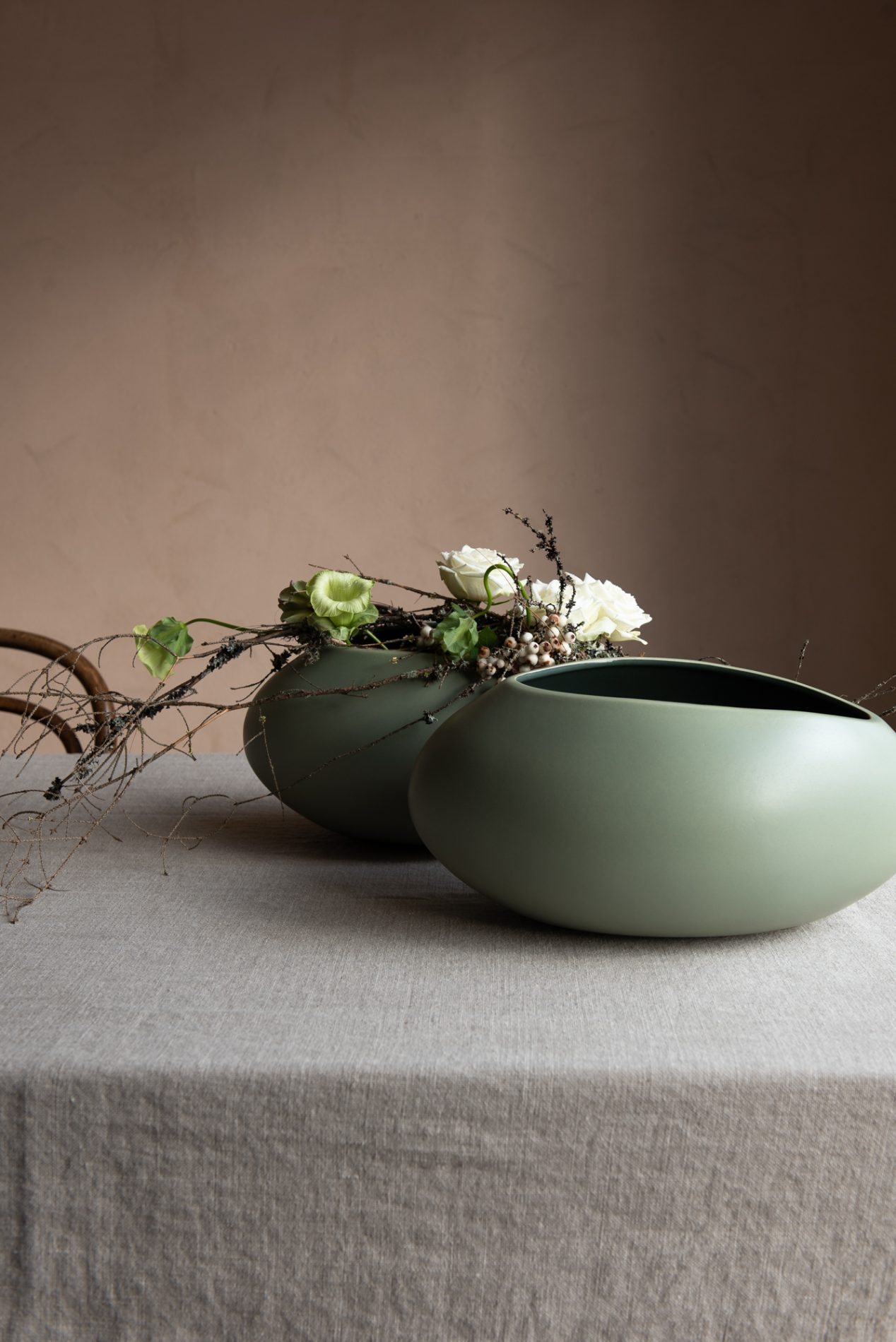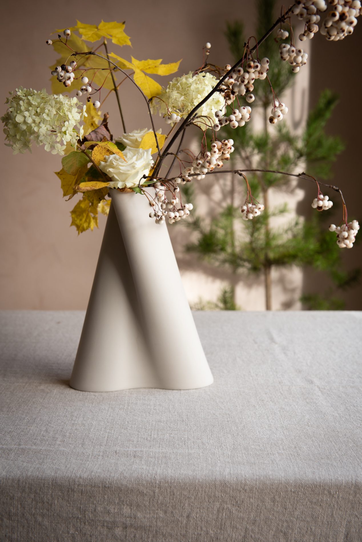 Bølgevase liten er en skulpturell skjønnhet som passer like godt til høstens blomsterbuketter som til vinterens grønne grener. Med sine myke bølger og håndlagde detaljer, skaper den et naturlig og elegant uttrykk på bordet eller i vinduskarmen.