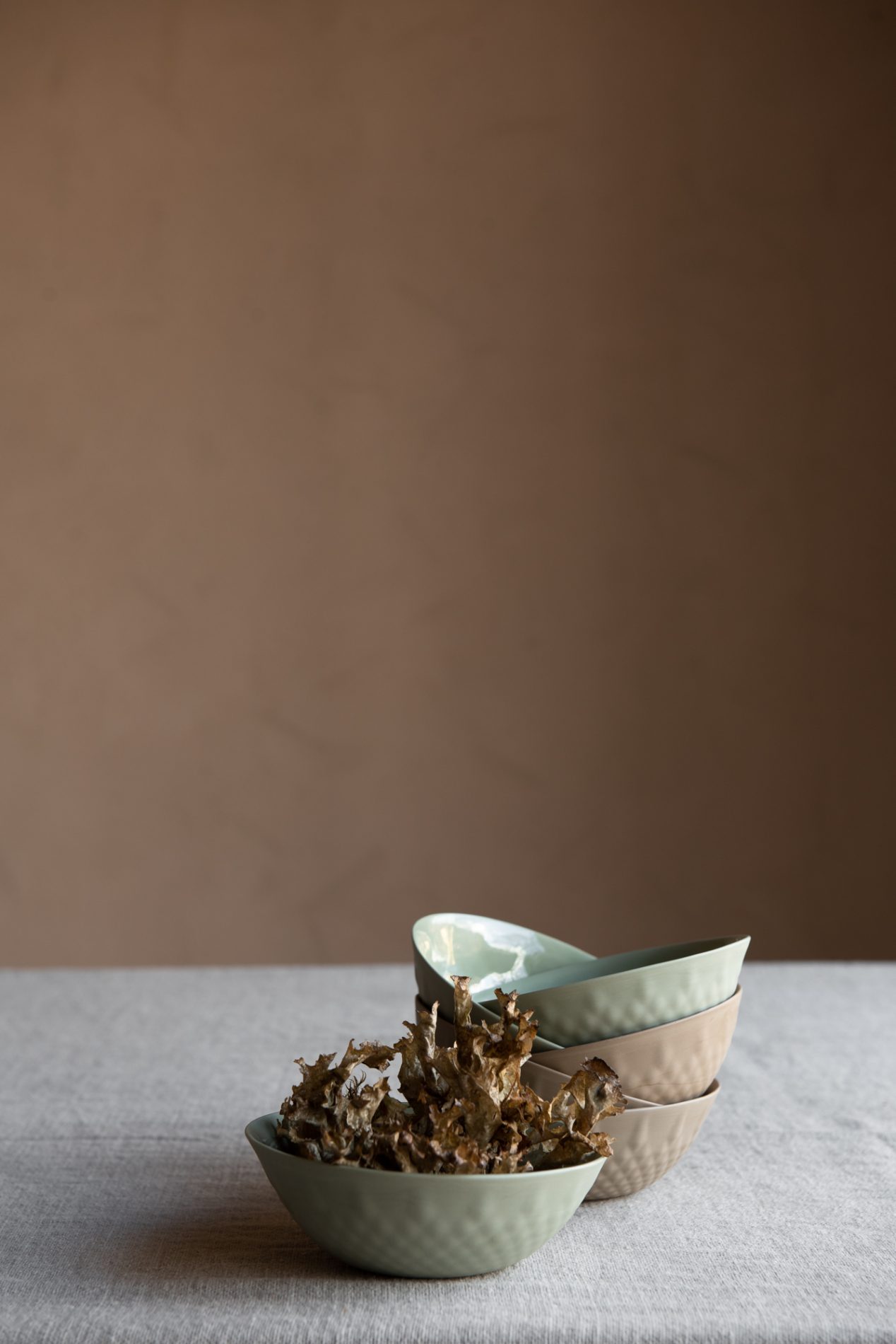 Håndlaget bolle i leire spesialdesignet for Under Lindesnes. Sandbollen har et karakteristisk røft uttrykk som gir en følelse av autensitet og direkte forbindelse med naturen. Tilfører bordekkingen og rettene du serverer det lille ekstra.