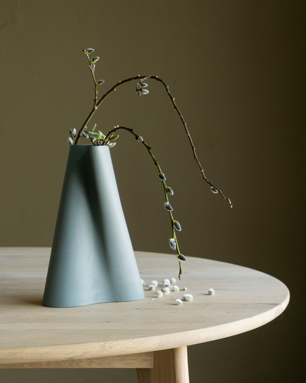 Bølgevasen har en dynamisk form som fanger lyset og skaper vakre skygger. Den er designet slik at formene passer perfekt i hverandre. Fint med en, men enda finere med flere.